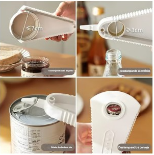 Este Abridor Prático Triangular multifuncional torna a abertura de frascos, garrafas, latas uma facilidade, que até uma criança consegue!