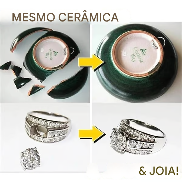 A cola oleosa repara os produtos em uma ligação forte instantaneamente. -