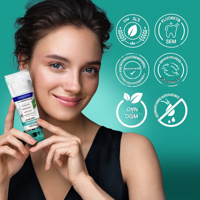 Descubra o segredo de um sorriso radiante com nossa pasta de dente, onde o frescor se une à confiança a cada apertar do tubo!